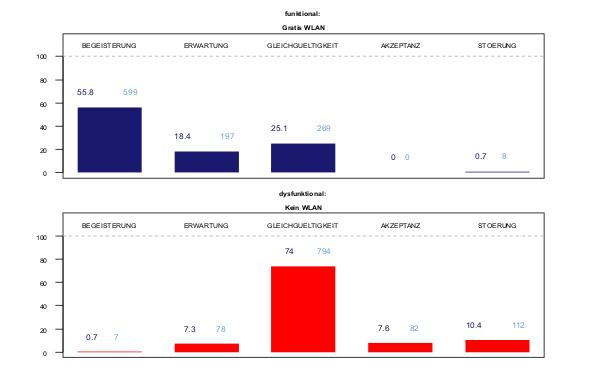 Die Interviewpersonen bewerten, ob sie Leistungen begeistern, als Basis voraussetzen oder überhaupt vielleicht stören. Interessant ist dies vor allem im Zusammenhang mit den zuvor berechneten Marktsegmenten: Leistungen, die in einem Marktsegment/Kundensegment begeistern, können in anderen Marktsegmenten/Kundensegmenten als Basis verstanden werden.